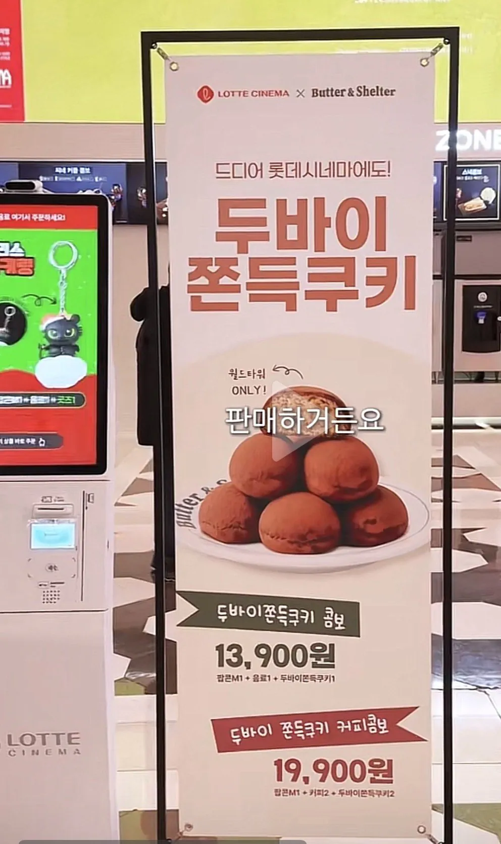 팝콘 + 콜라 + 두바이쫀득쿠키 = 13,900원