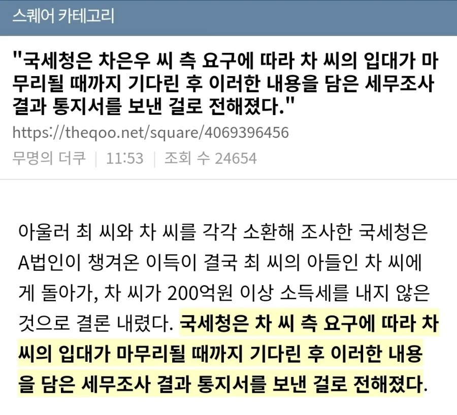 겁대가리 없이 국세청 뒤통수를 쳐버린 차은우