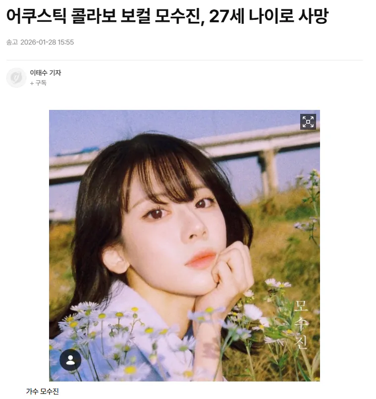 속보) 어쿠스틱콜라보 27세 나이로 사망