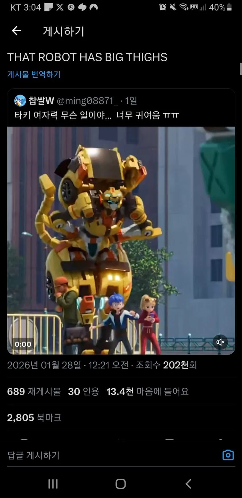 외국인: 와 썅@너메거 로봇 왕벅지보소ㅋㅋ