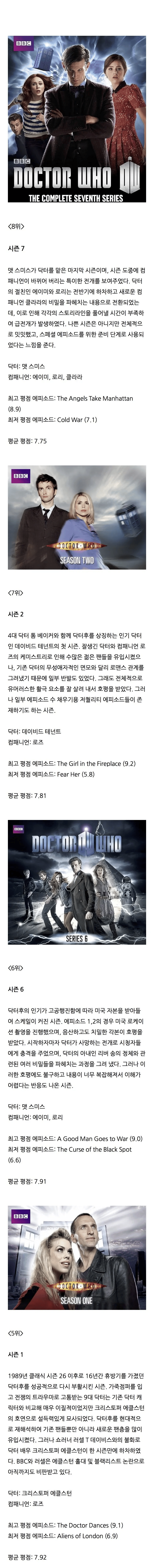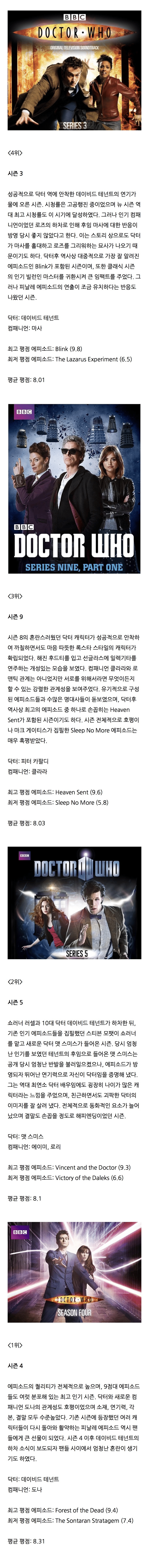 역대 닥터후 시즌평점 순위