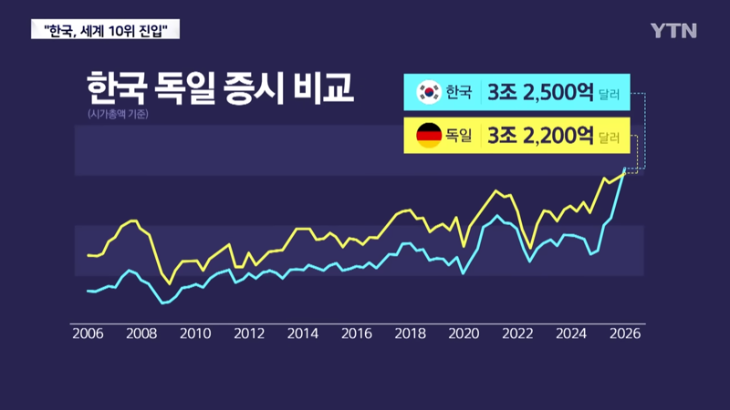 "한국 증시 시총, 독일 추월...세계 10위 진입"