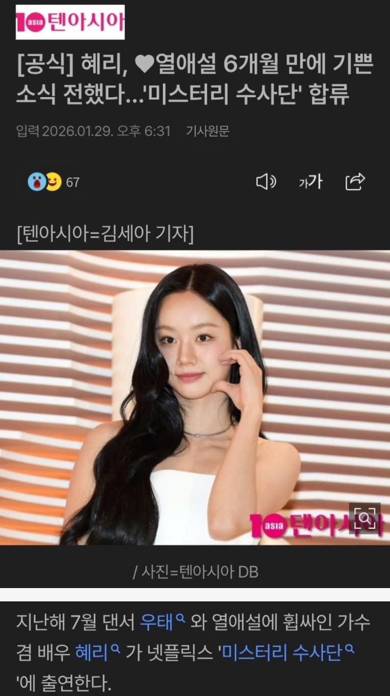 혜리, 열애설 6개월 만에 기쁜 소식 전했다