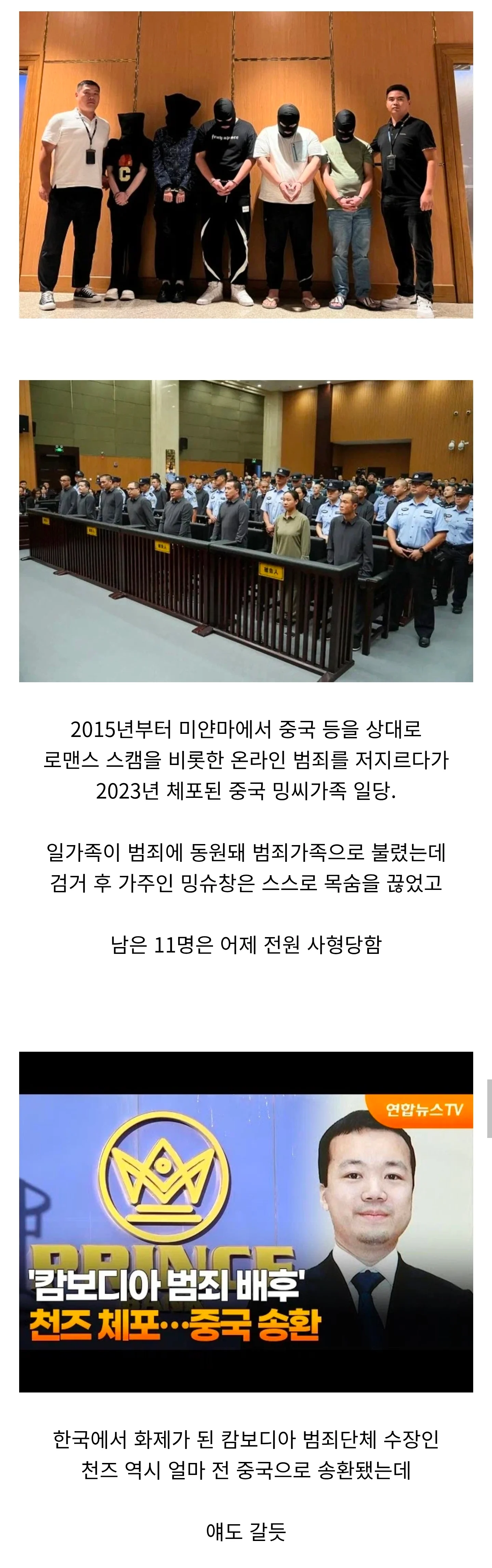 동남아에서 보이스피싱하던 중국 범죄자가족 전원 사형
