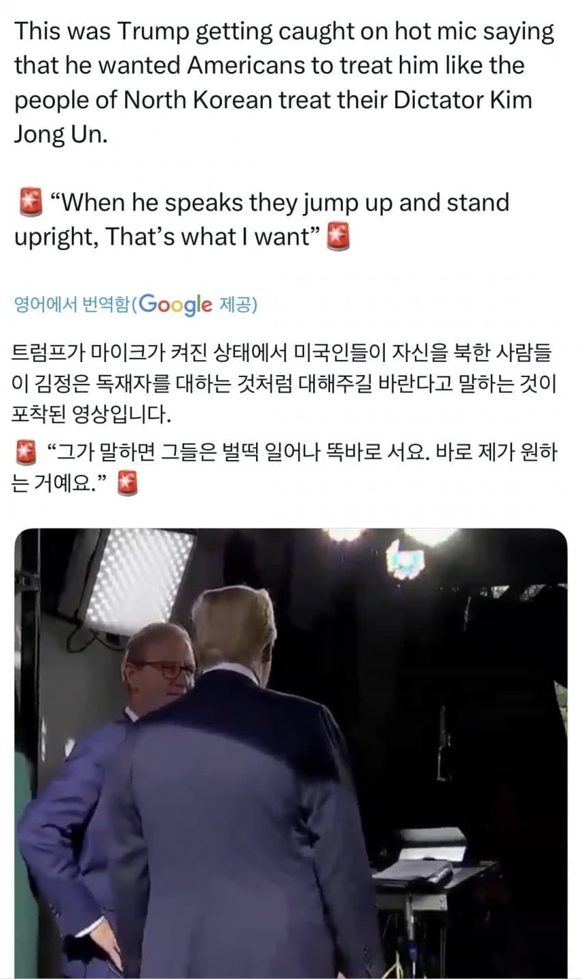 트럼프, "날 김정은처럼 대하는 것처럼 해줬으면 좋겠다."