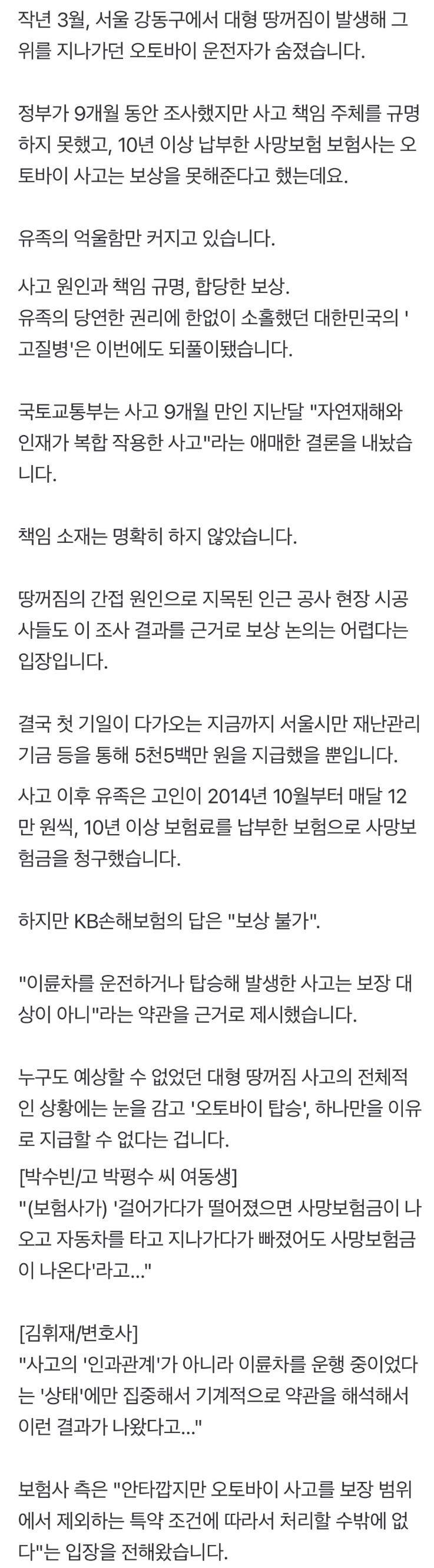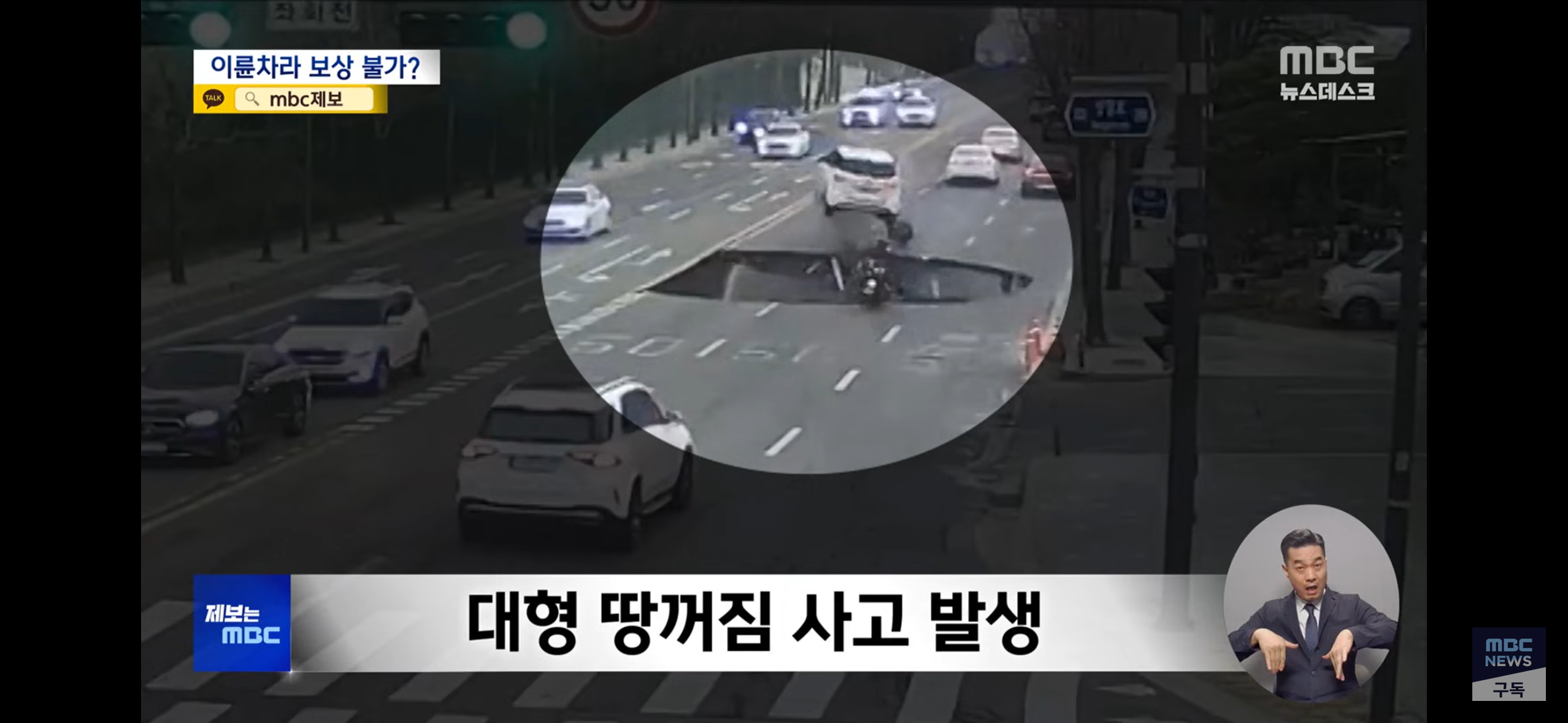 싱크홀 사고 "오토바이 타고 있었다면 보상 못한다"