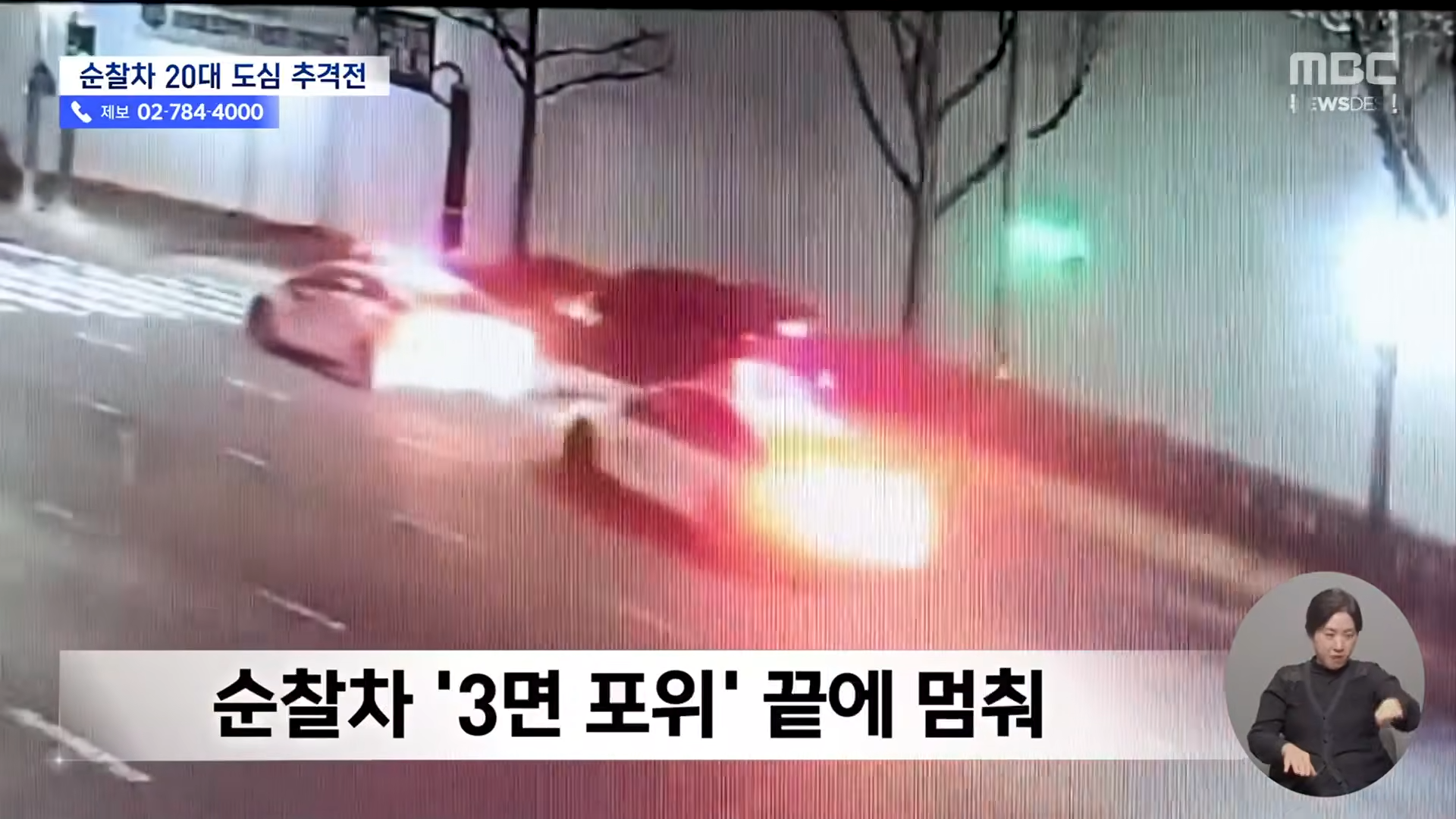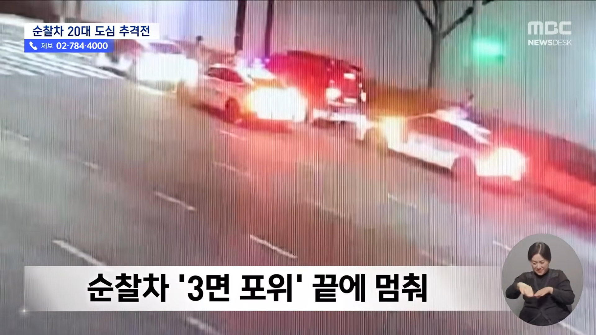 겨우 3면에서 경찰차로 막아서 잡으니까