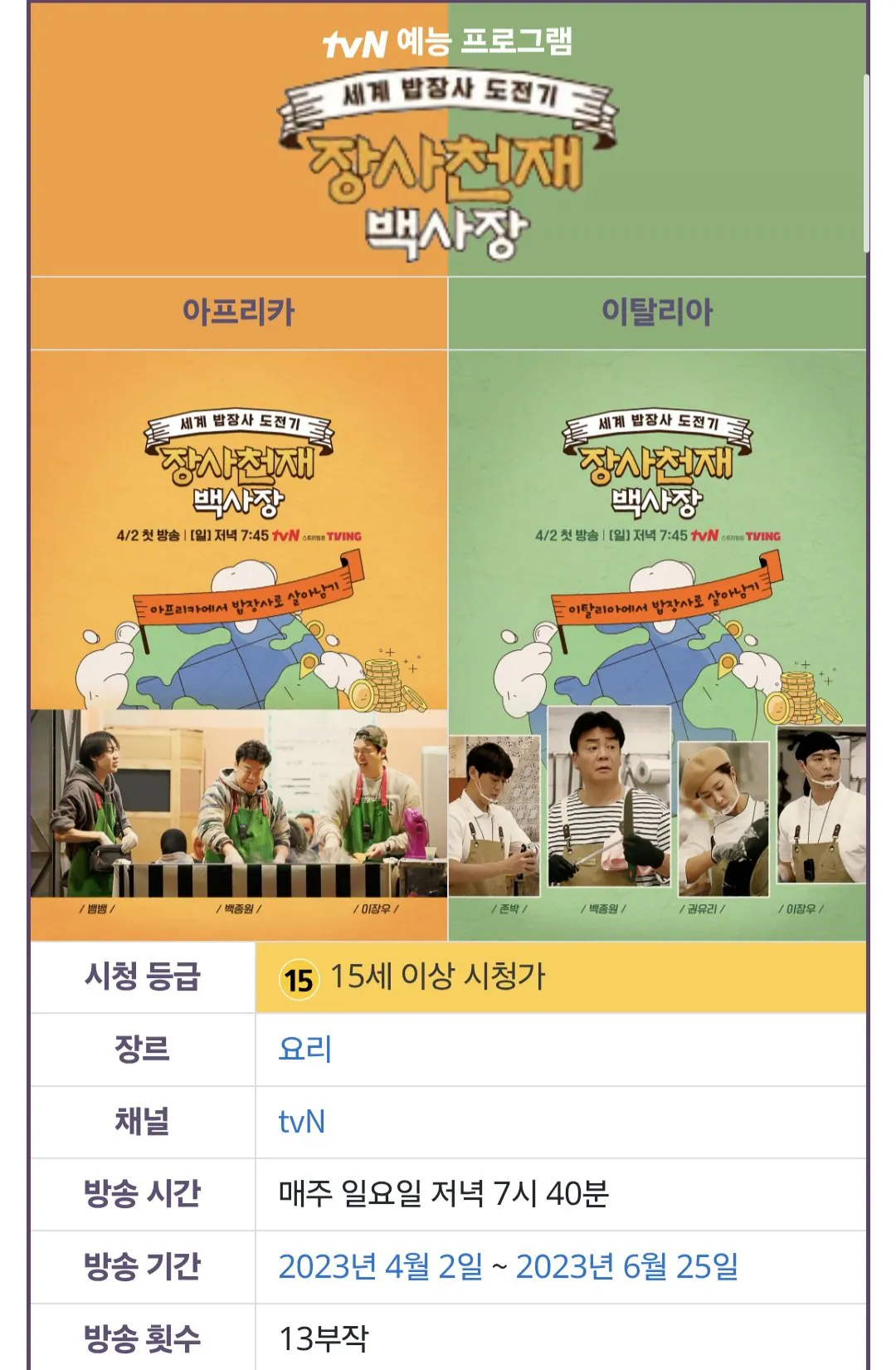 각각 13, 14부작인데 비해