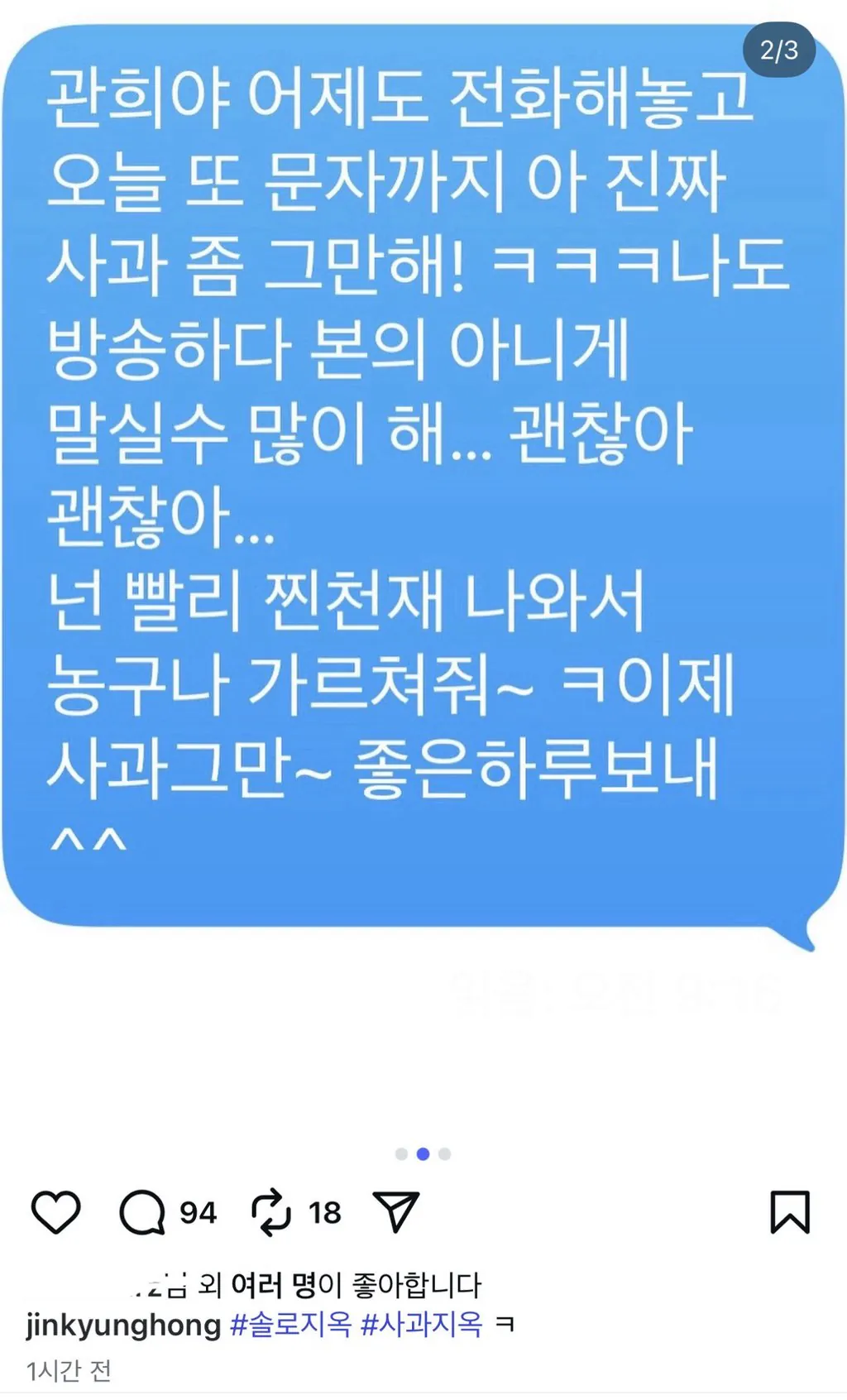 이관희 관련.. 오늘자 홍진경 인스타 댓글 0 조회 572 2026-01-31 14:21 강승 Lv.11 게시글 보기 총 게시글: 1,608개 총 댓글: 0개 강승님의 다른 글 26.01.31 "김남일은 윤석민보다 인지도 떨어진다" 26.01.31 욘사마 마누라 리즈시절 몸매 26.01.31 이대호가 타던 중고차 진짜 싸게 산 유희관 26.01.31 예전 빅뱅 스태프 동료를 만나 흥분한 대성