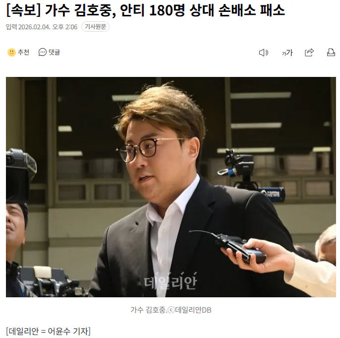 가수 김호중, 안티 180명 상대 손배소 결과