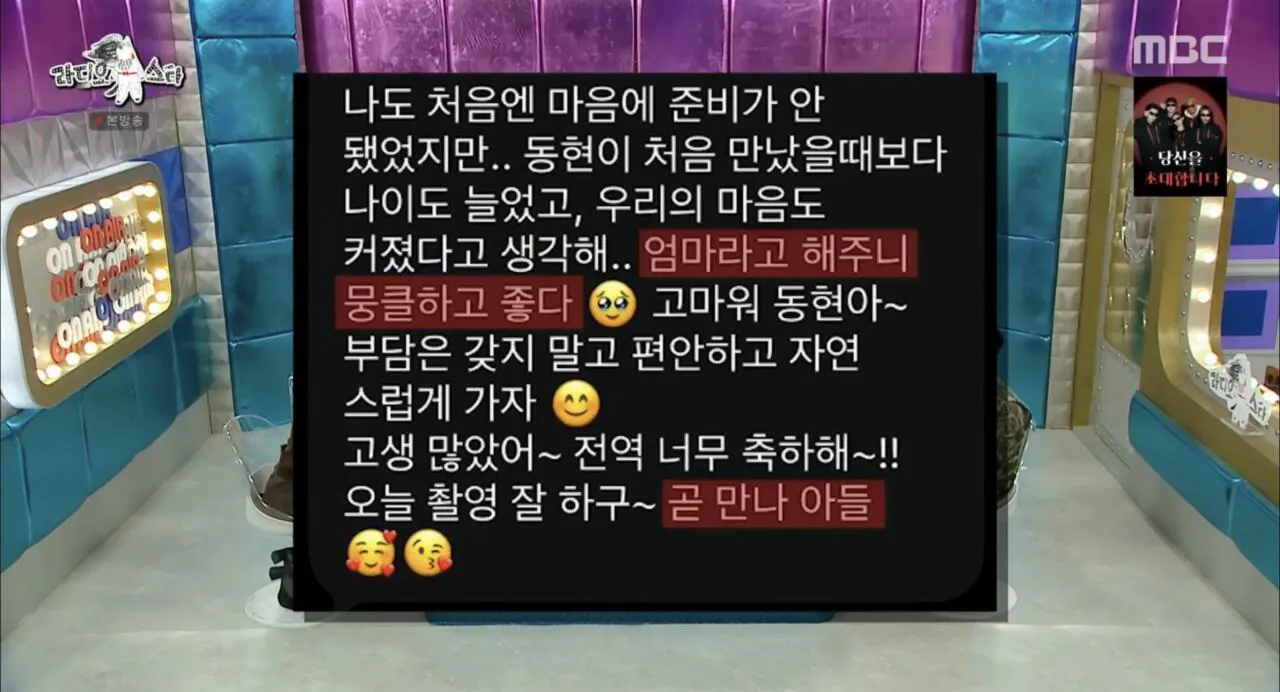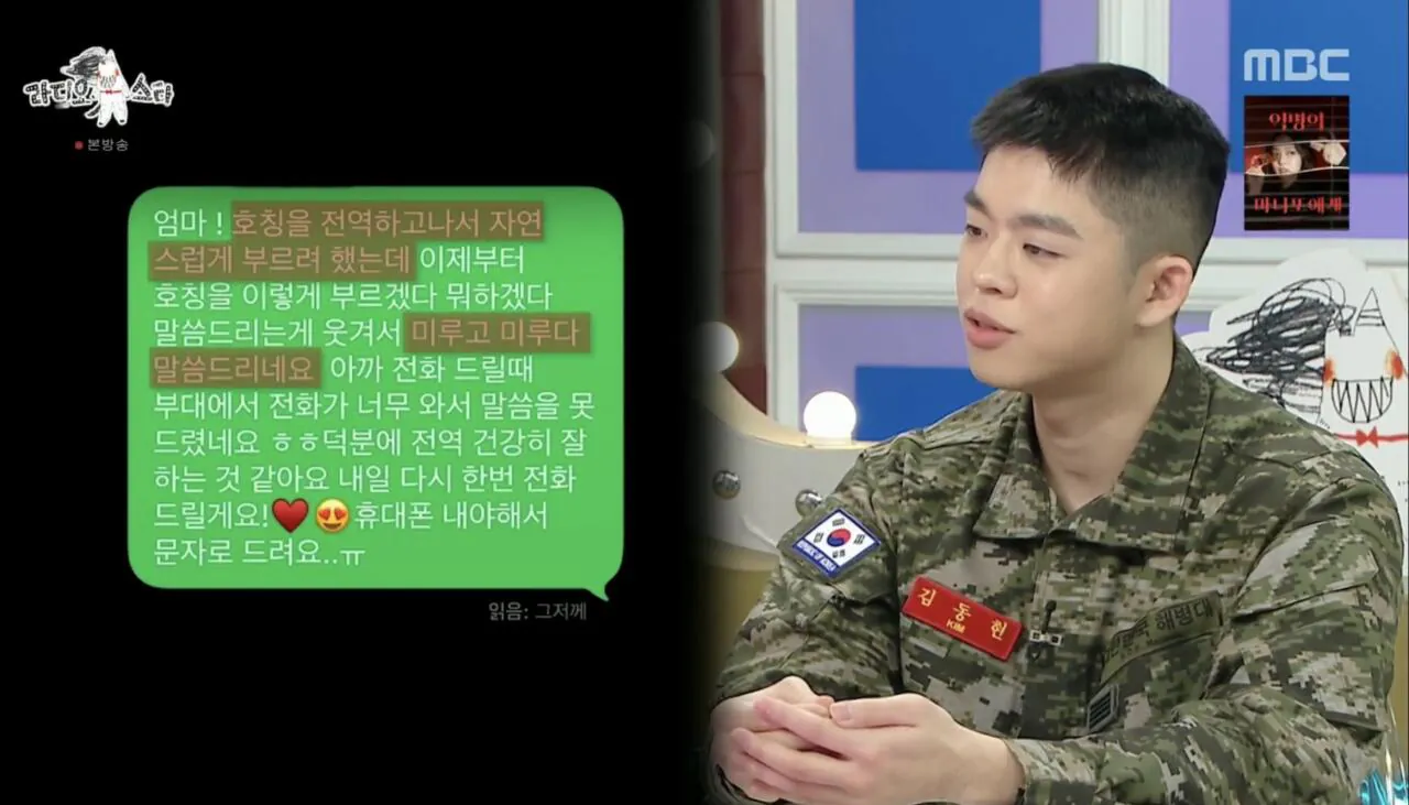 MC그리가 라스에서 공개한 전역 전날 엄마와 문자한 내용