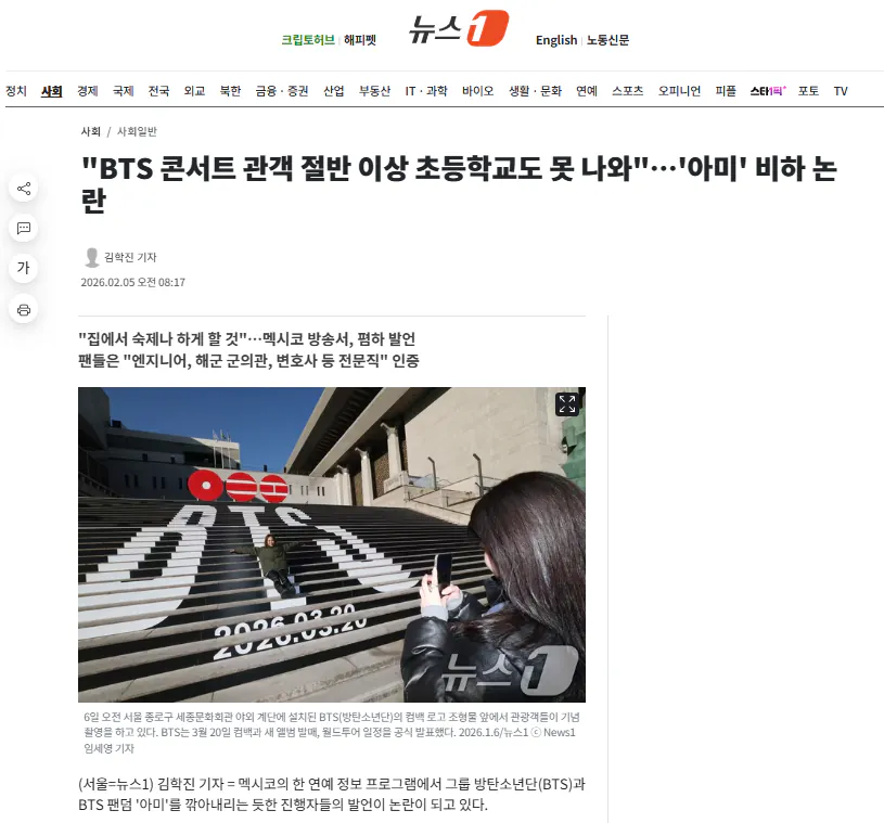 "BTS 콘서트 관객 절반 이상 초등학교도 못 나와"
