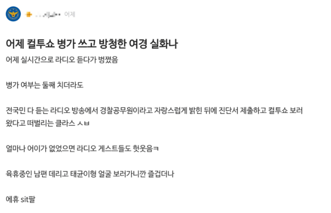 “가짜 병가 쓰고 보러왔어요”...컬투쇼 방청 논란의 여경