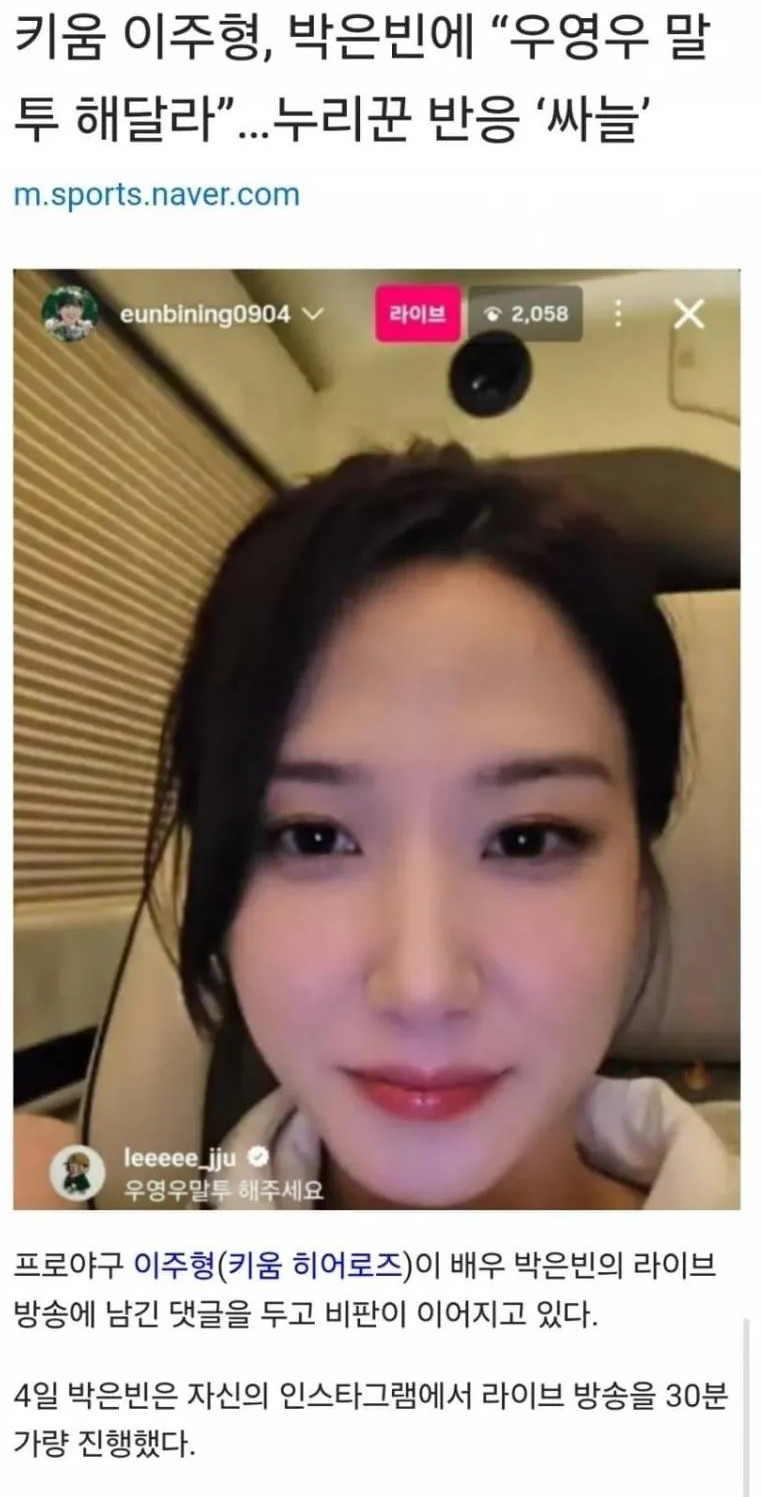 박은빈 인스타라이브에 단 댓글 때문에 난리난 야구선수