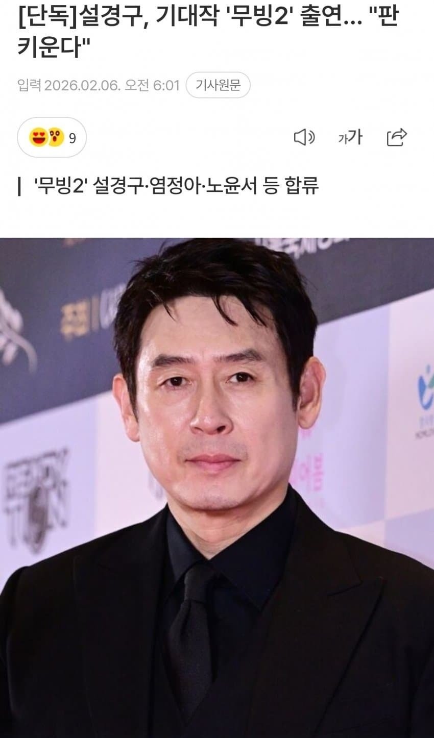 "무빙" 시즌2 출연 확정된 탑급 배우 ㄷㄷ 댓글 0 조회 549 2026-02-06 15:10 개장수11 Lv.7 게시글 보기 총 게시글: 1,597개 총 댓글: 0개 [단독]설경구, 기대작 `무빙2` 출연… "판 키운다" - 마이데일리 개장수11님의 다른 글 26.02.06 "무빙" 시즌2 출연 확정된 탑급 배우 ㄷㄷ 26.02.06 선재스님 10년 간장으로 블라인드 테스트 해본 결과물 26.02.06 줄낚시로 상어 잡았다는 경수진.jpg 26.02.06 오래된 모쏠은 탈출할 수 없다