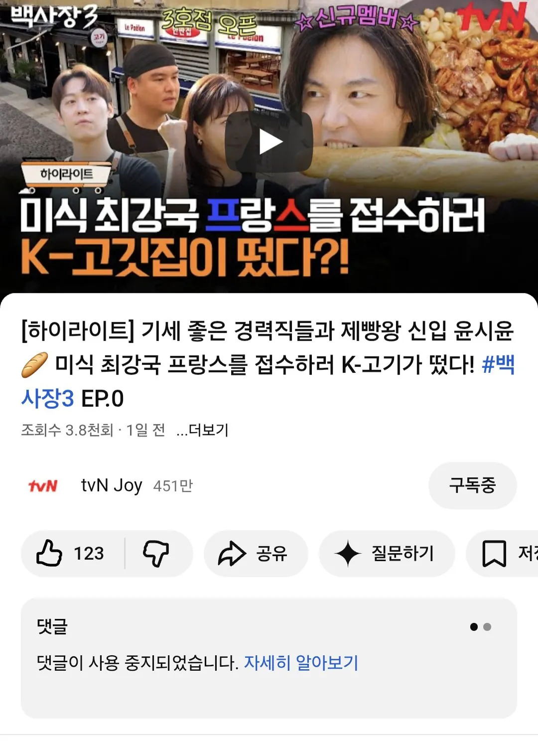 아쉽게도 영상의 댓글은 닫혀 있네요...