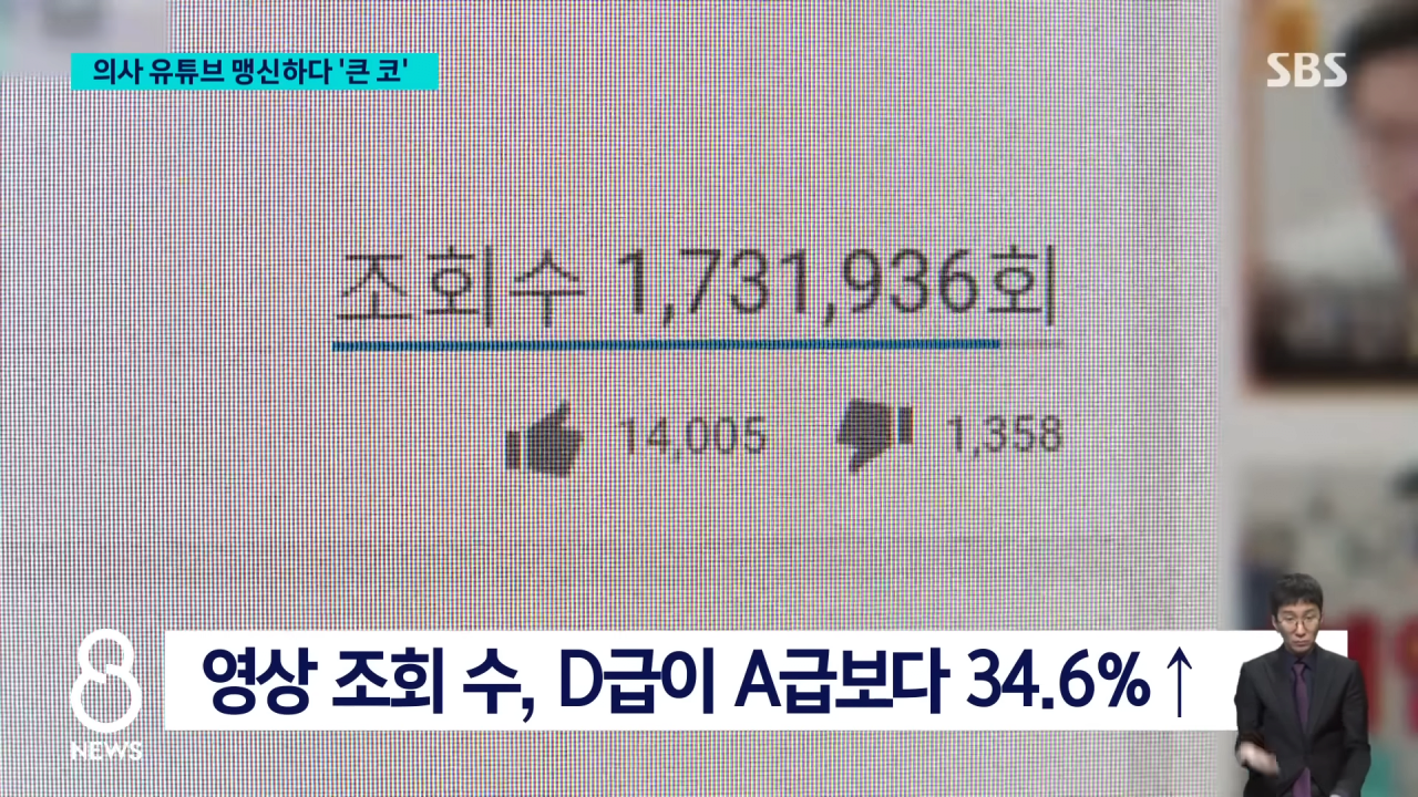 의료인 유튜브 영상 309개를 분석한 결과 D등급이 62.5%