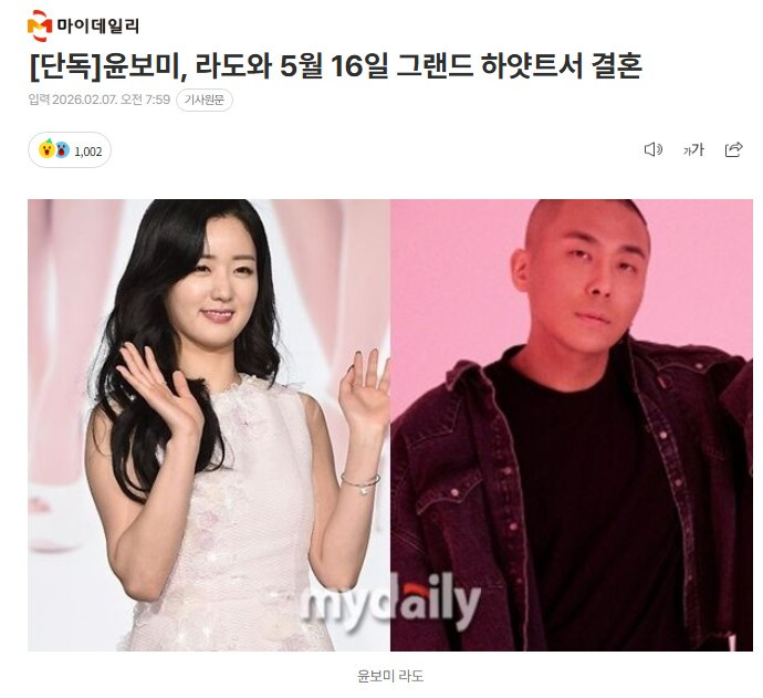 7일 마이데일리 취재 결과 윤보미는 5월 16일 그랜드 하얏트 서울서 작곡가 라도(42·송주영)와 결혼식을 올린다.