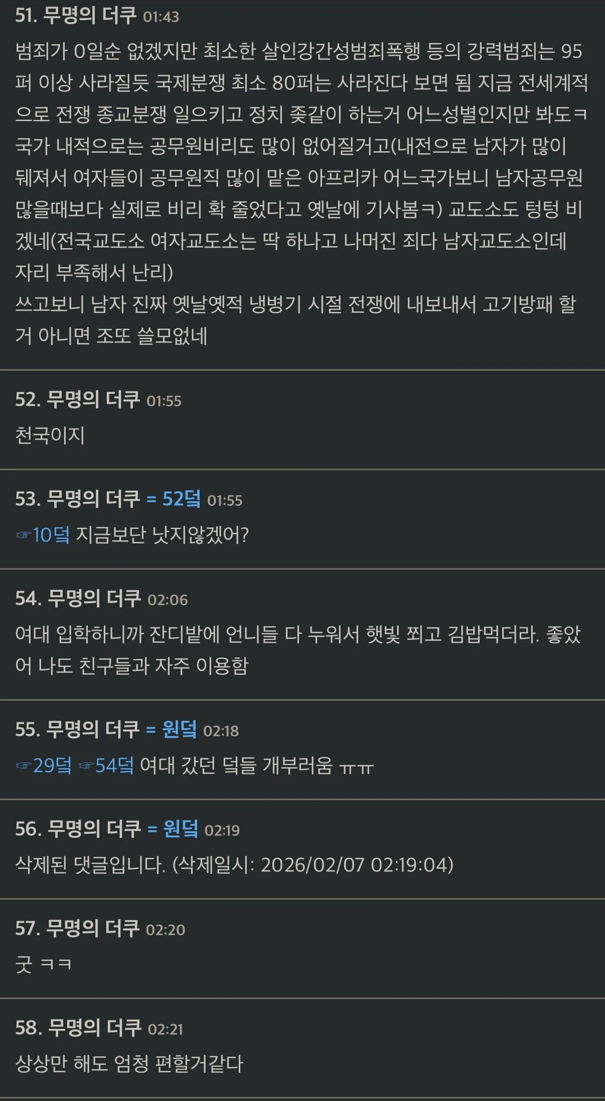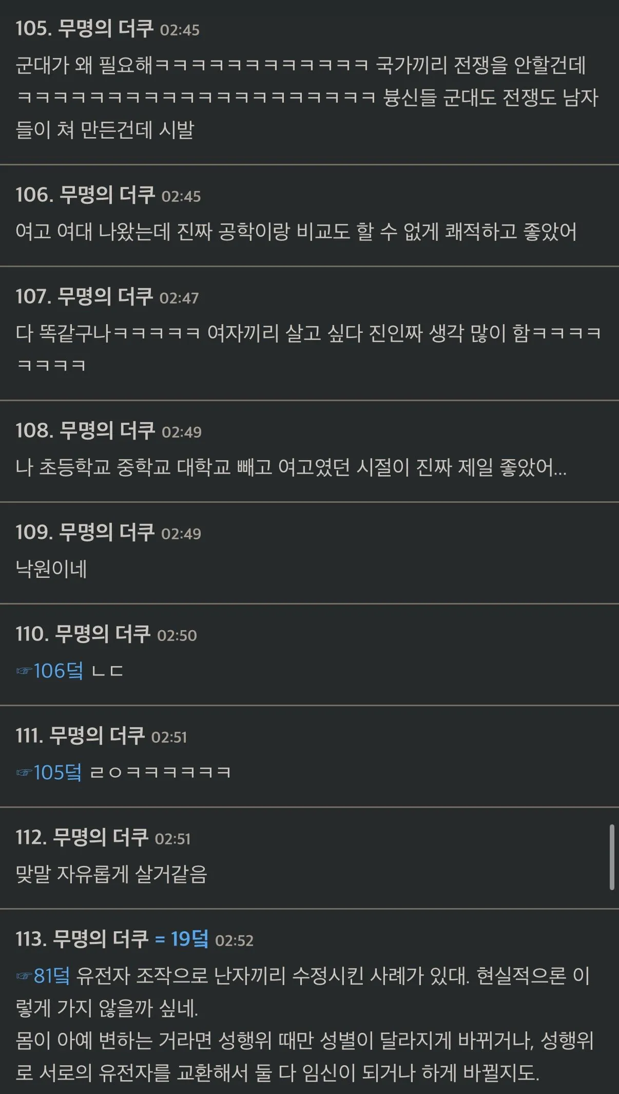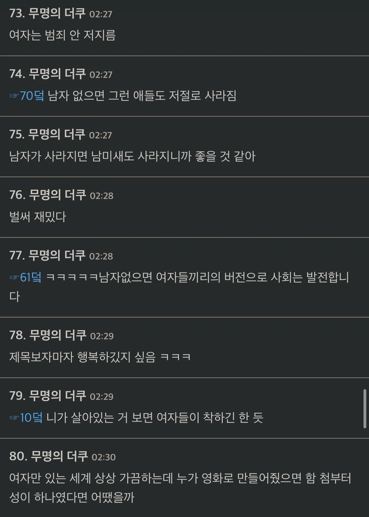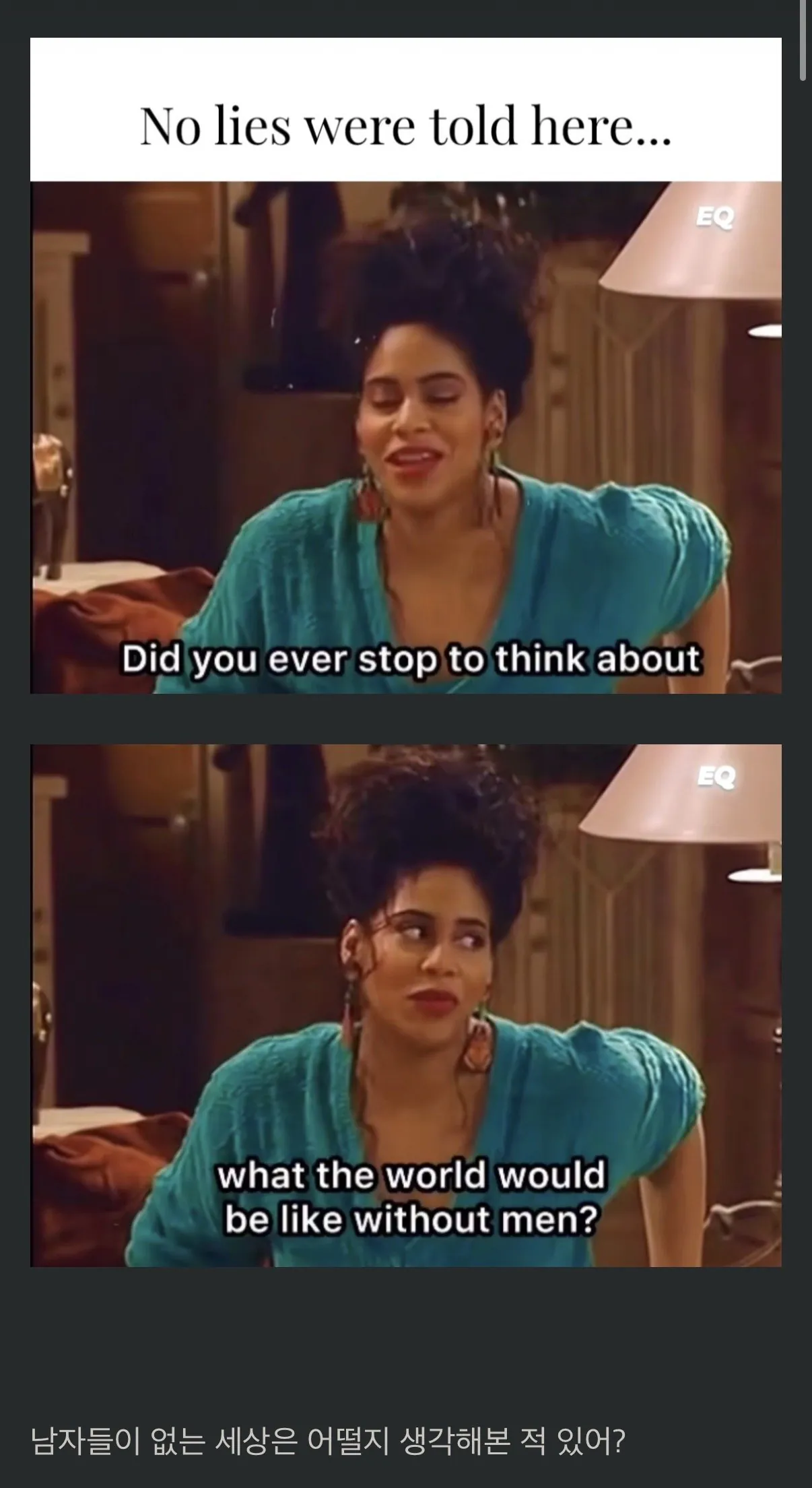 넌 남자들이 없는 세상은 어떨지 생각해본 적 있어?