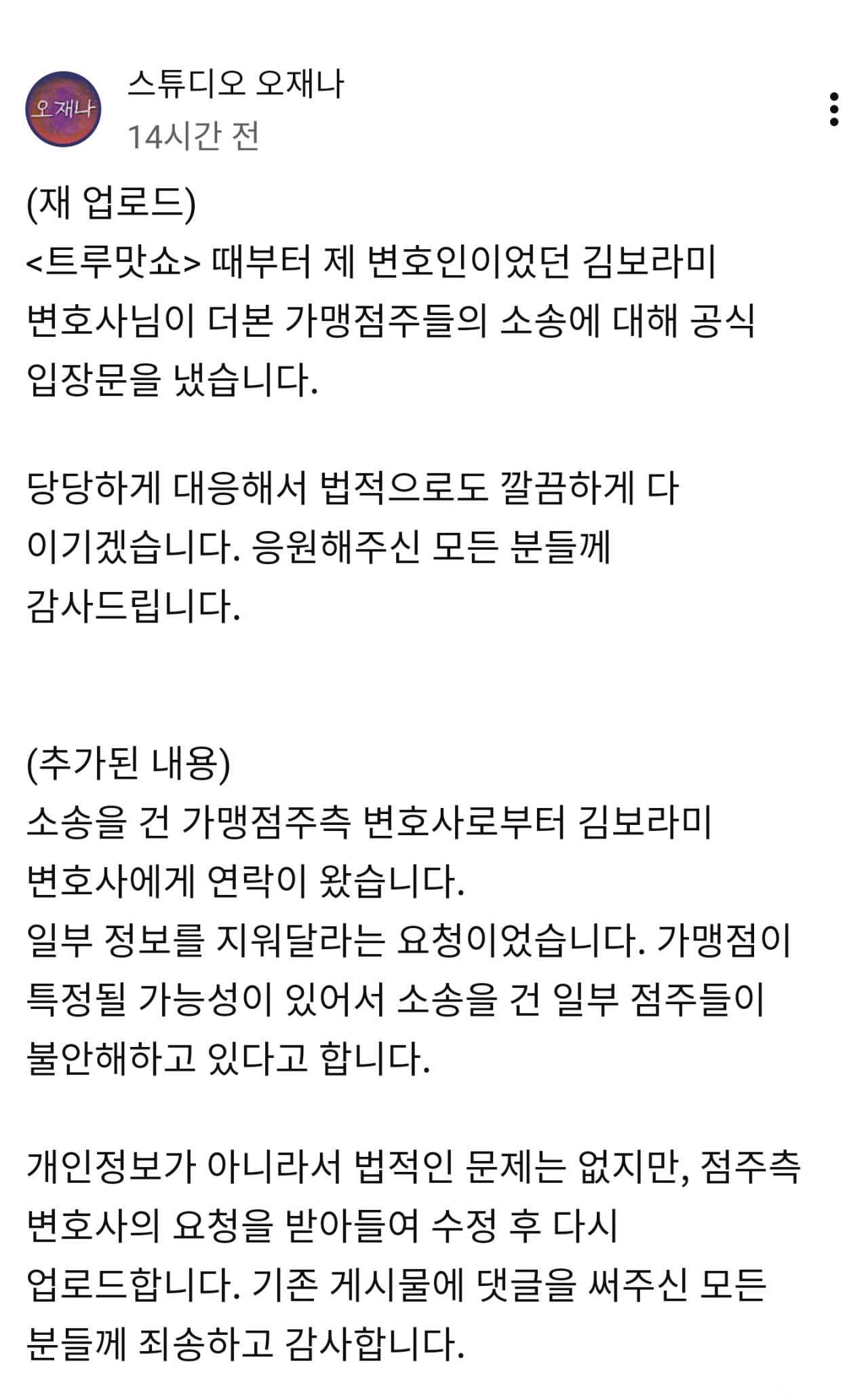 백종원 더본 가맹점주들한테 소송당한 김재환PD 근황