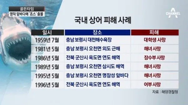 - 이처럼 95년 보령 사건과 96년 군산 사건은 한국 해양 사고 역사상 가장 위험했던 '상어 습격의 시기' 로 기록
