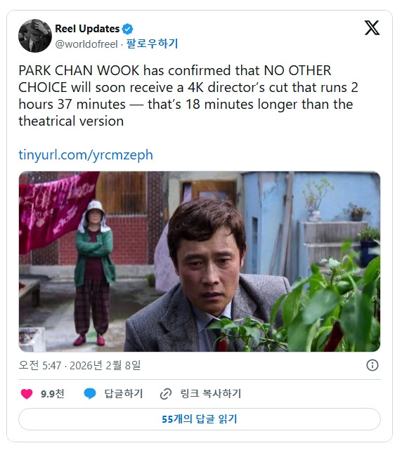 박찬욱: ”어쩔수가없다 2시간 37분 감독판 곧 공개한다”