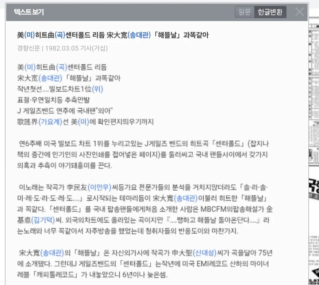 故송대관의 해뜰날과 매우 똑같다 (해뜰날은 75년도 발매)