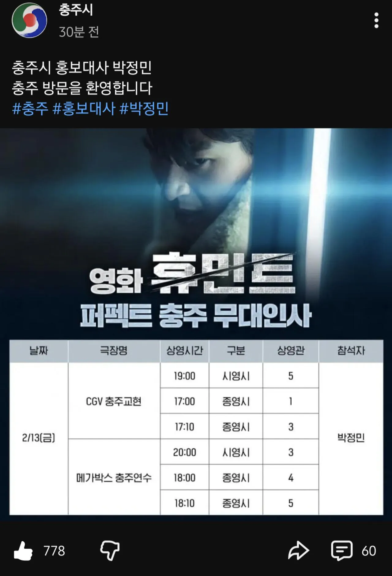 박정민, 혼자서 충주시 휴민트 무대인사