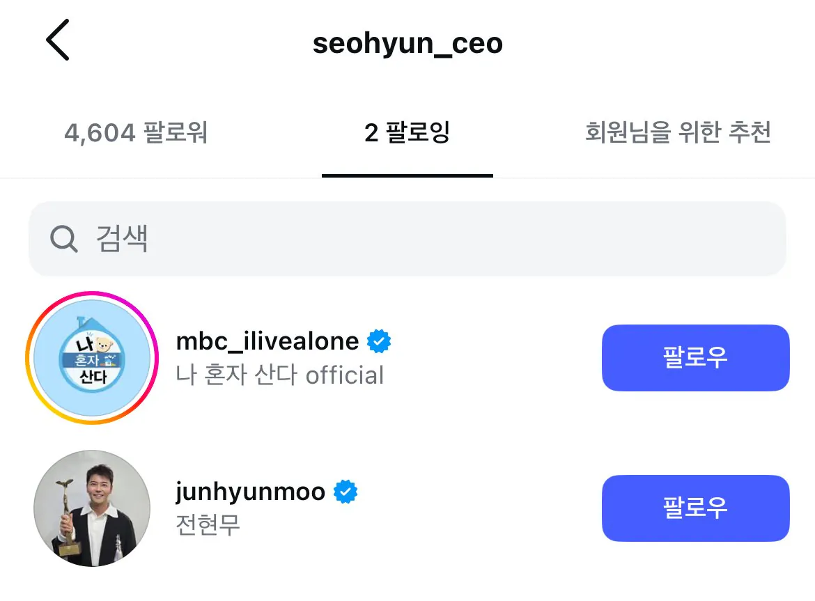 현재 주사이모 팔로잉 목록