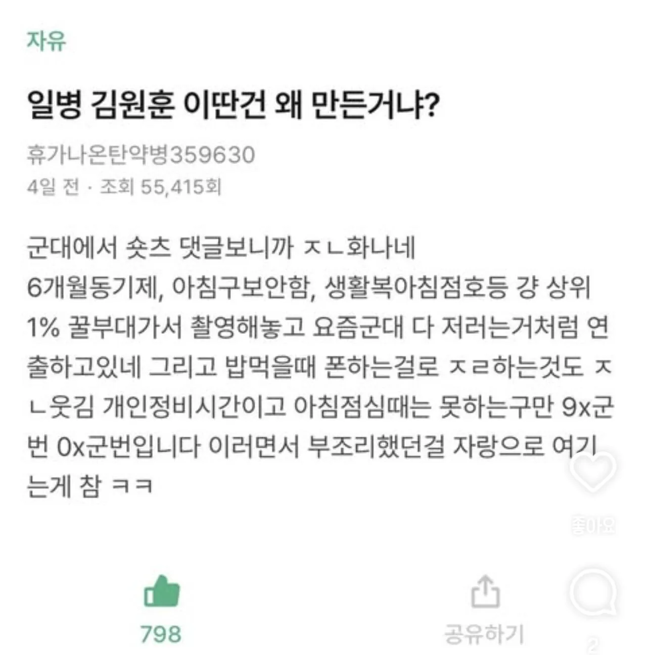 김원훈 최근 군대 체험 보고 개빡친 사람
