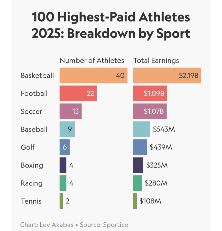 세계 스포츠 선수 수입 TOP 100 종목 분포