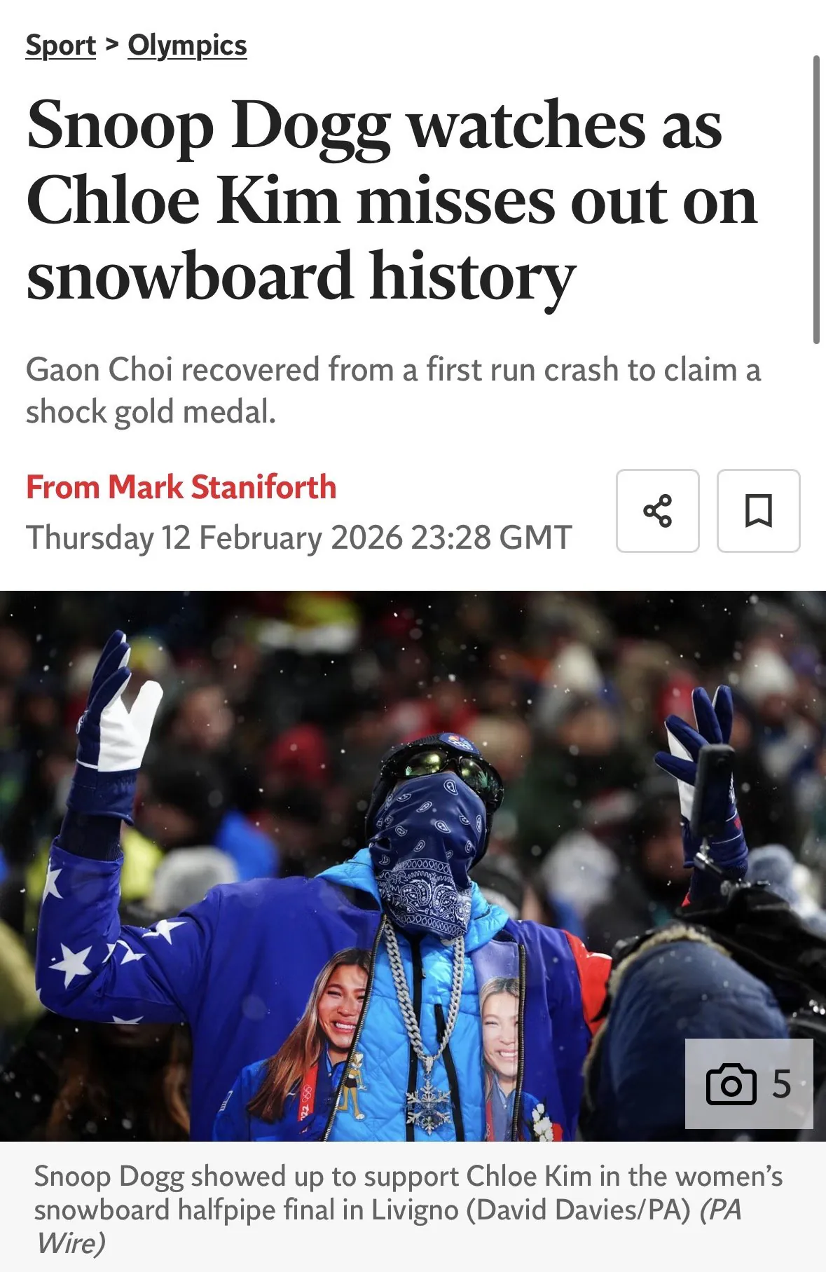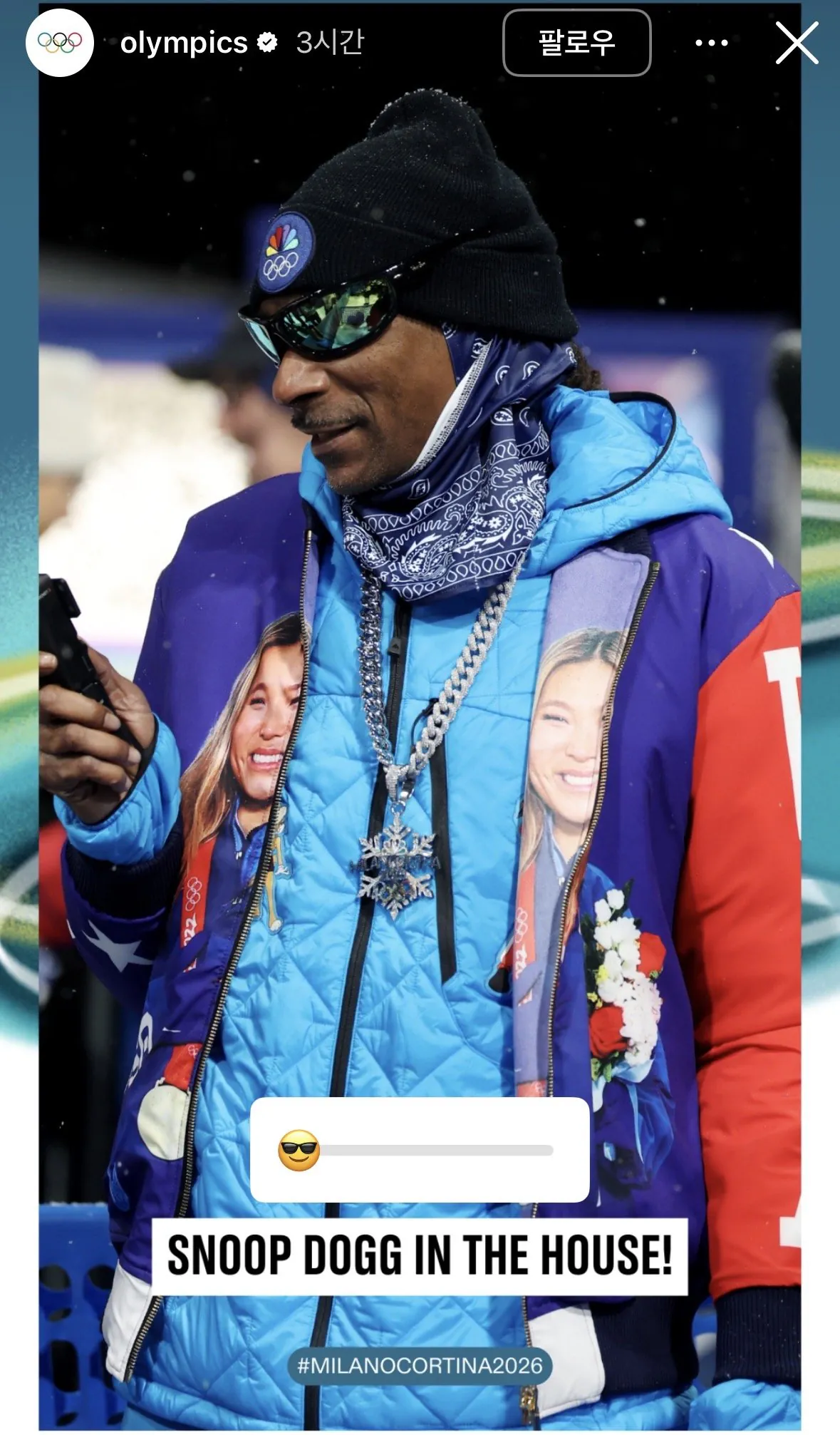 올림픽 스노보드 현장에서 클로이 킴 응원한 스눕독