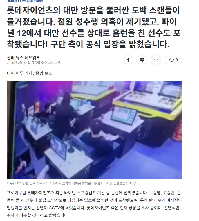 롯데자이언츠 도박 대만 현지 뉴스뜸