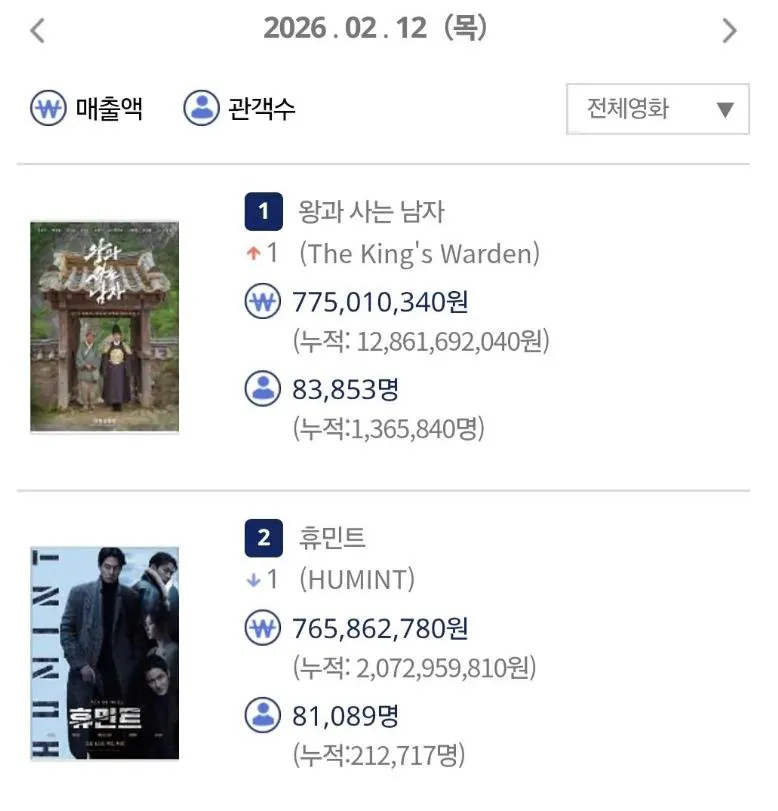 개봉첫날 예상대로 1위로 출발
