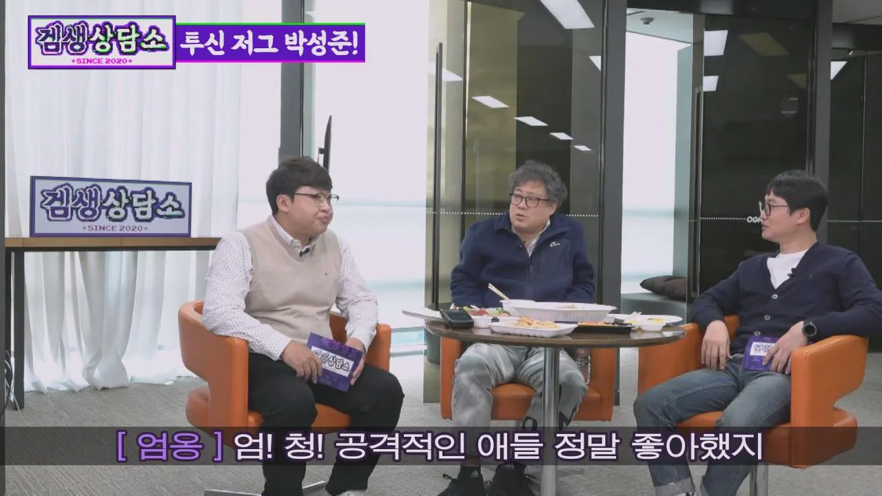 반대로 저그vs저그 경기처럼 평균 경기 시간이 짧은 매치업이나 '투신' 박성준 선수처럼 매우 공격적인 성향을 가진 선수들을 좋아했다고 ㅋㅋㅋ