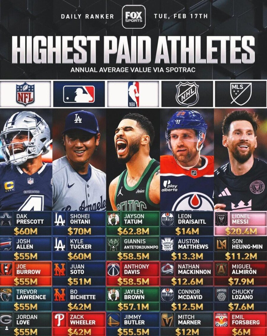 미국 5대 스포츠 연봉 Top5 (feat.손흥민)
