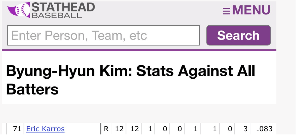 김병현  상대로  전적 12타수 1안타 이기 떄문