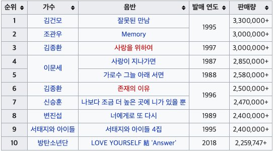 의외로 음반판매량이 ㅎㄷㄷ했었던가수