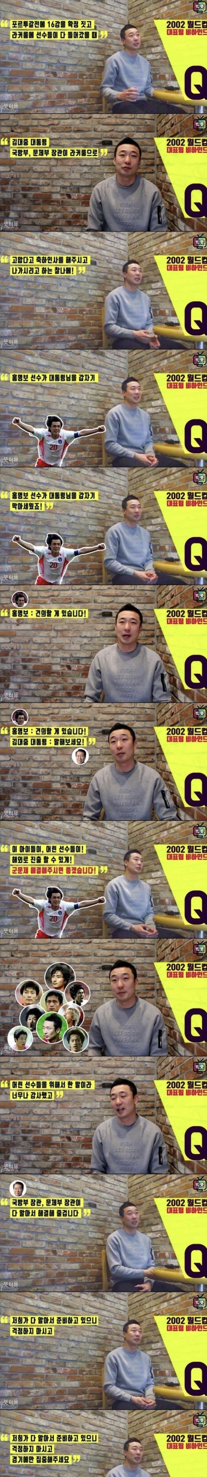 영상보면 홍명보가 해주세요하니깐 김대중이 국방당국과 협의해서 좋은소식 전해드리도록 하겠다라고 함