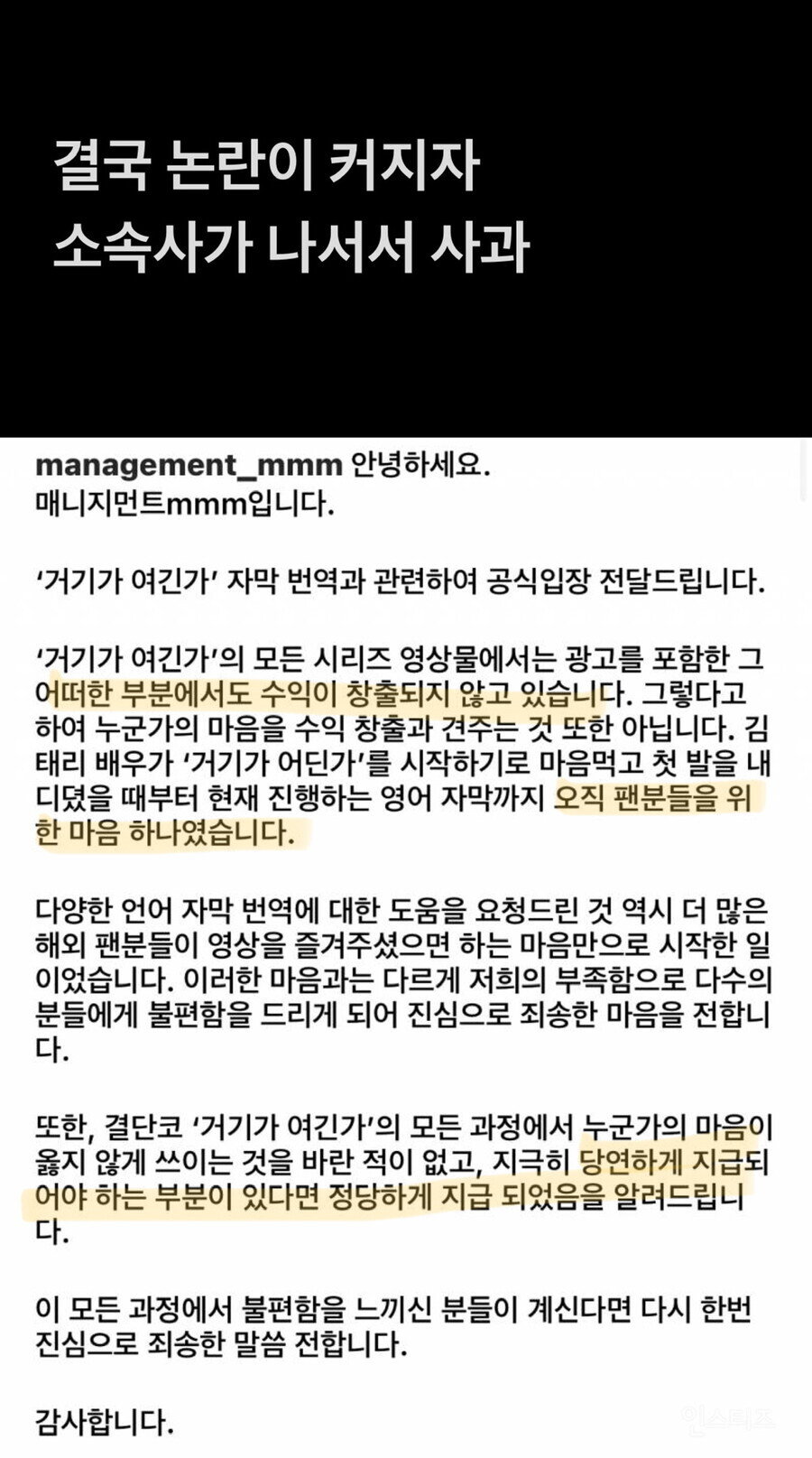 사과문이 더 문제 자기 이미지 관리 및 홍보용으로 쓰는 유튜브이면서 수익활동을 하지 않는다고 둘러대는게 뭐가 문제인지 전혀 이해를 못하는거 같음