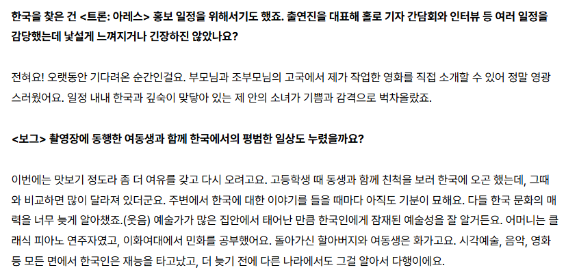 기자간담회에서 한국계 스탭들이랑 배우들이 전세계적으로 주목받는 거 어떻게 생각하냐는 질문에