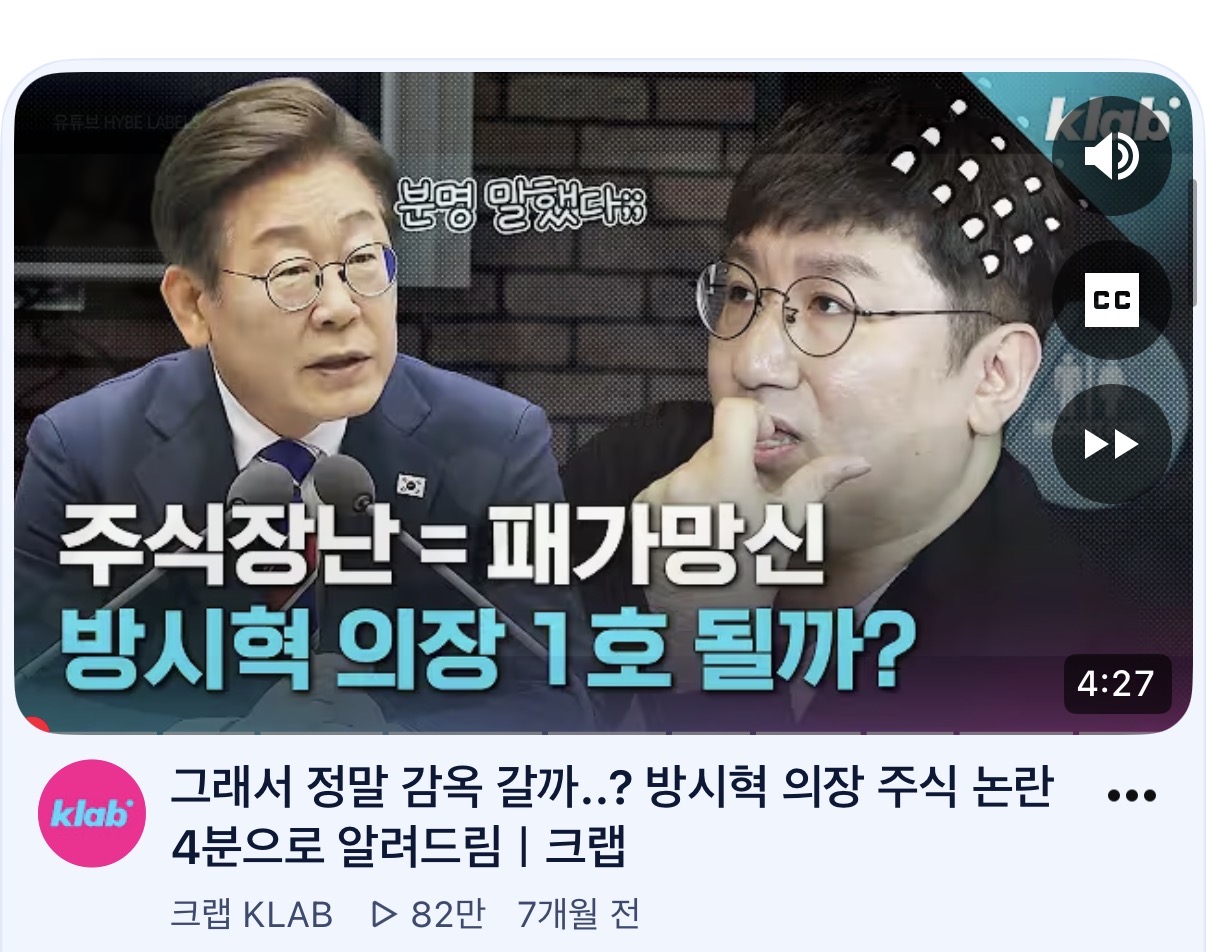 방시혁은 작년에 4천억 주가조작 혐의로 수사 들어감