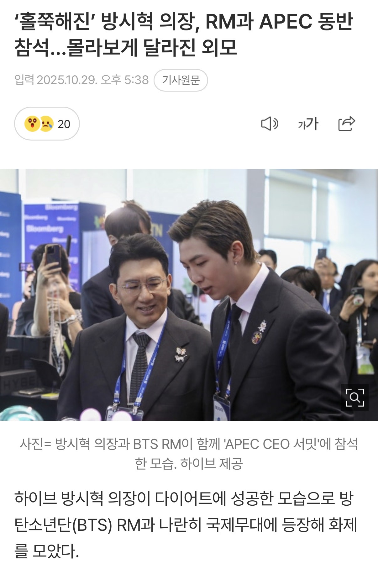 아무튼 홀쭉(기사 워딩임)해진 모습으로 APEC CEO 써밋에 참석도 함