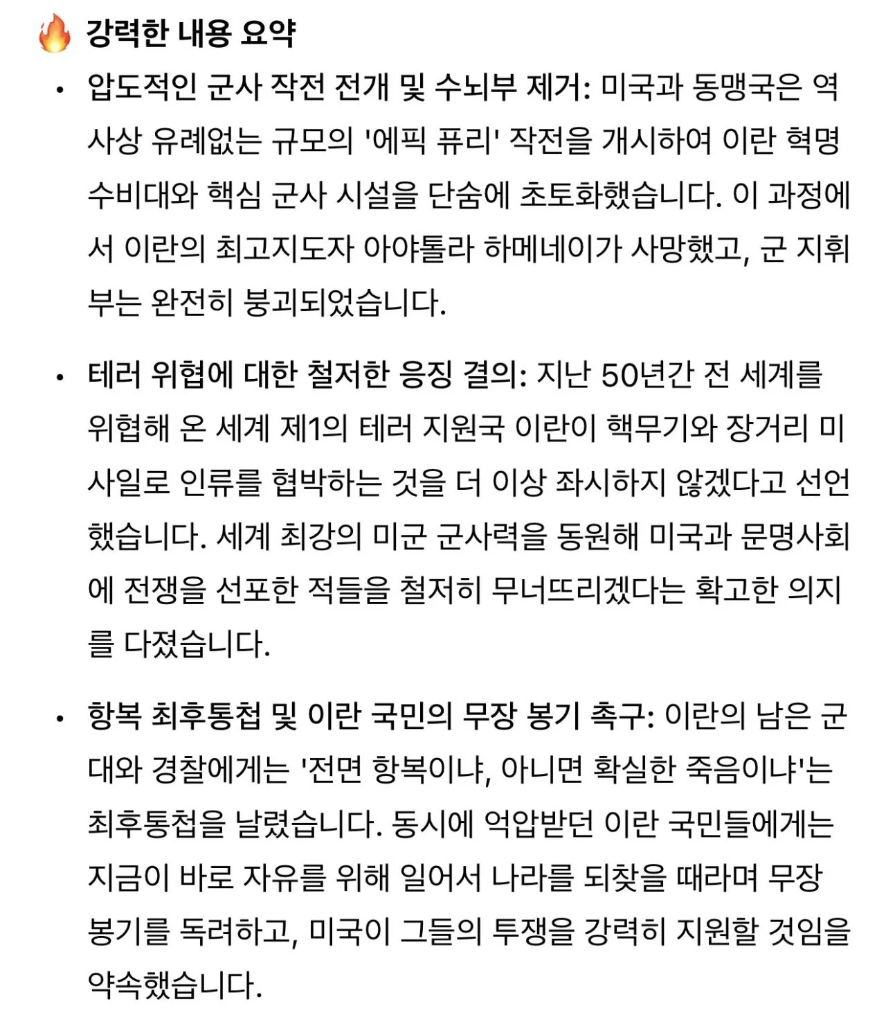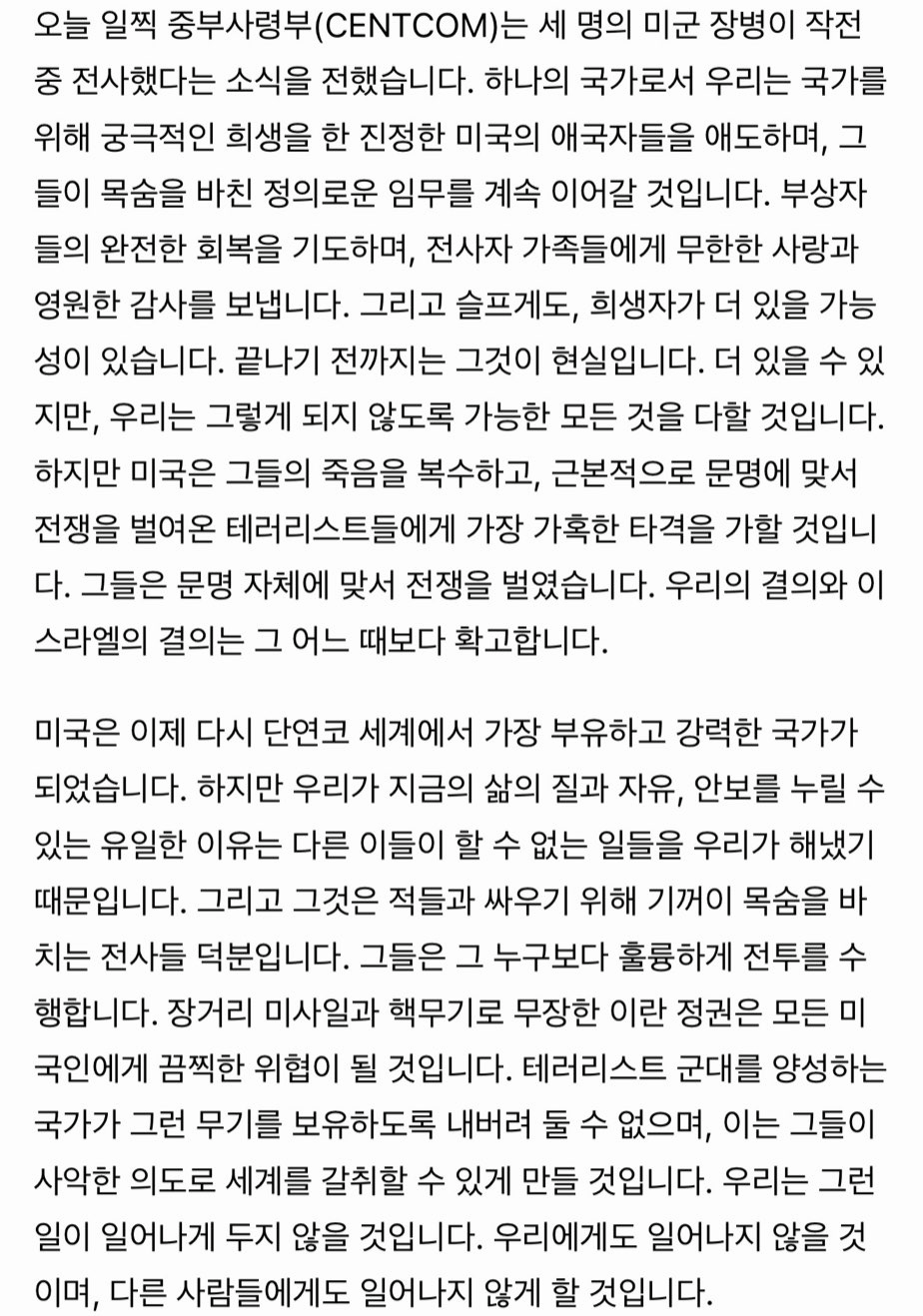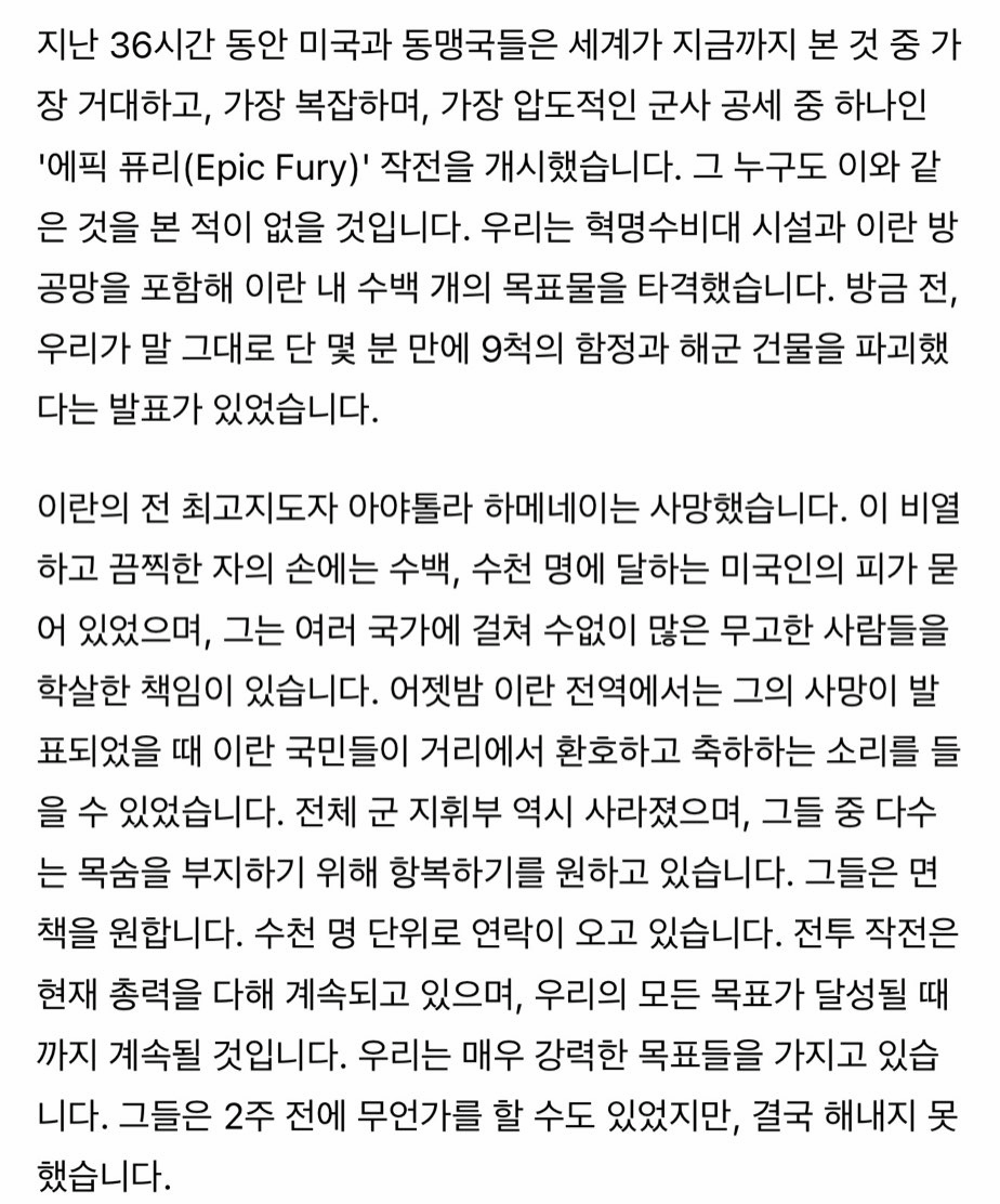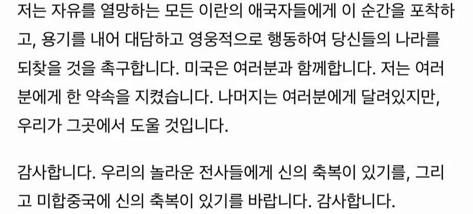 트럼프 연설 전문 "이란 국민 너희들에게 달렸어"