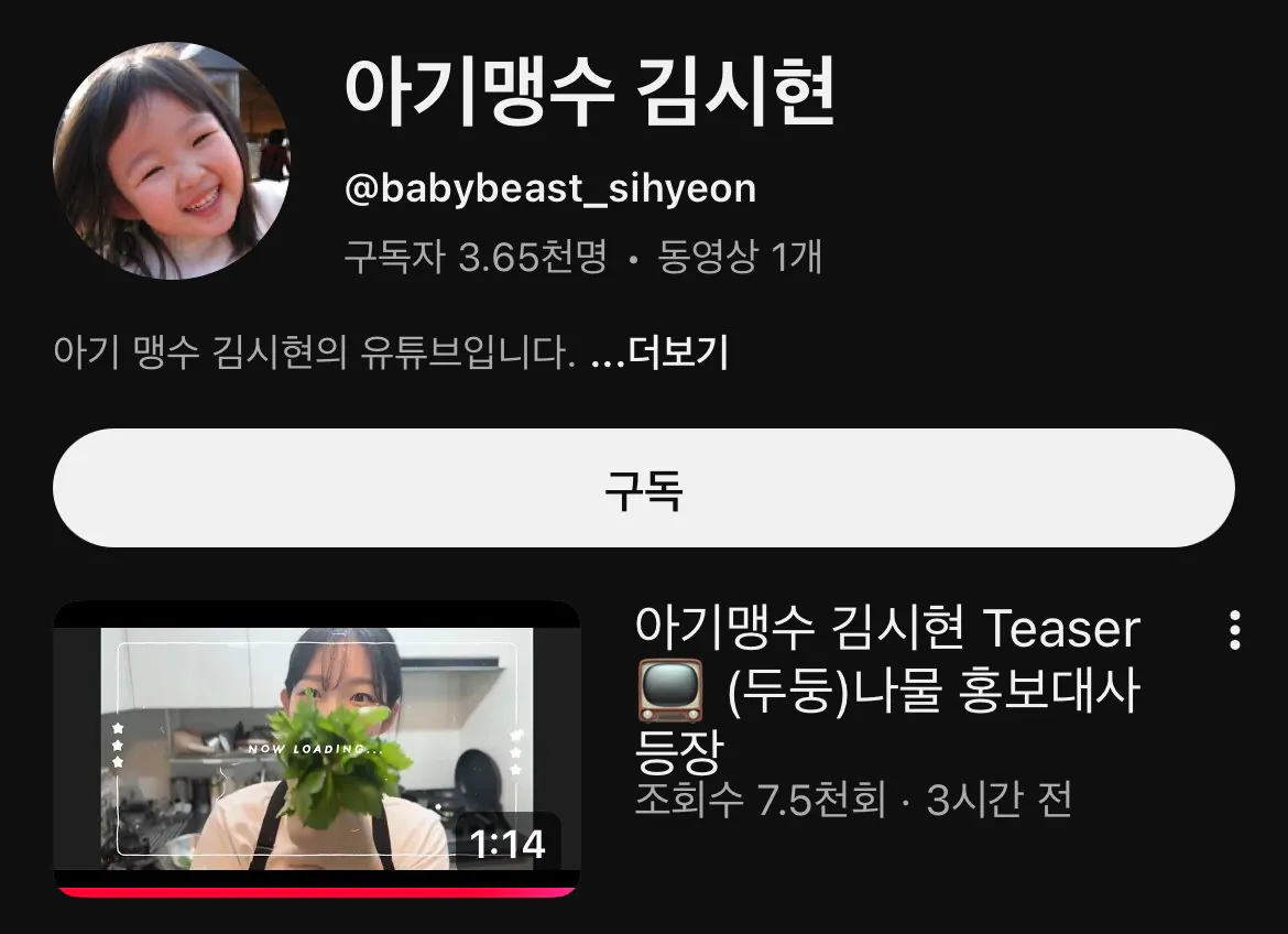 흑백 아가 맹수 유튜브 채널 만듬