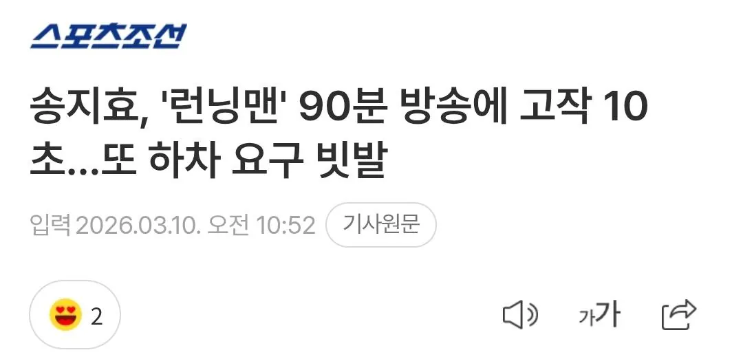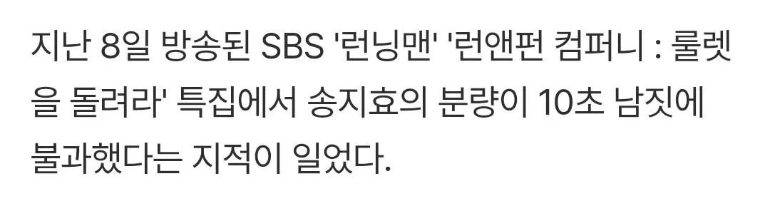 슬슬 기사 나오는 런닝맨 송지효 분량 논란