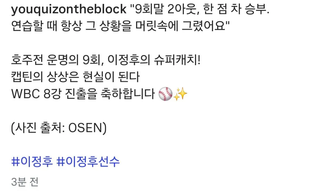 유퀴즈 인스타 wbc 8강 진출 기념샷