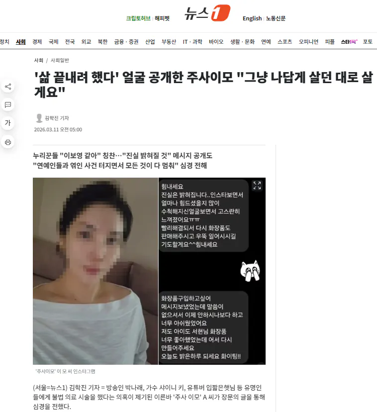 "삶 끝내려 했다" 얼굴 공개한 주사이모