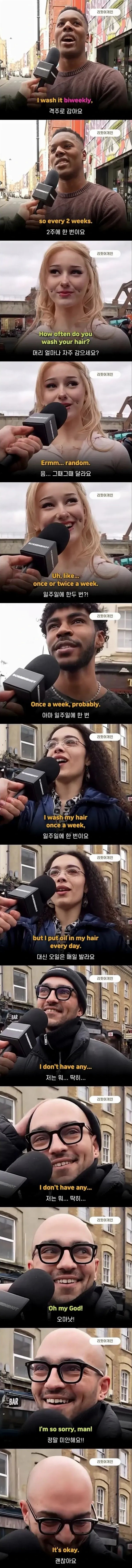 외국 남녀 머리 감는 횟수
