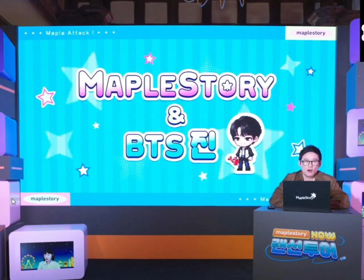 오늘자 메이플 쇼케이스 BTS 진 등장